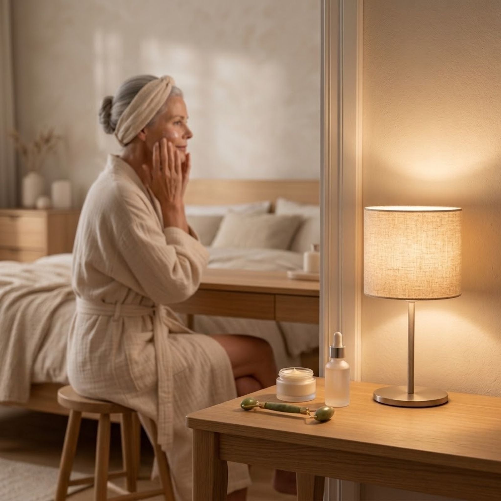Die wirksamste Kombination: Retinol abends für Zellerneuerung und Kollagenstimulation, Vitamin C morgens als antioxidativer Schutz, täglich Sonnenschutz LSF 50. Die Nacht ist das wichtigste Zeitfenster – eine konzentrierte Nachtcreme mit Peptiden und Hyaluronsäure nutzt die erhöhte Aufnahmebereitschaft optimal.